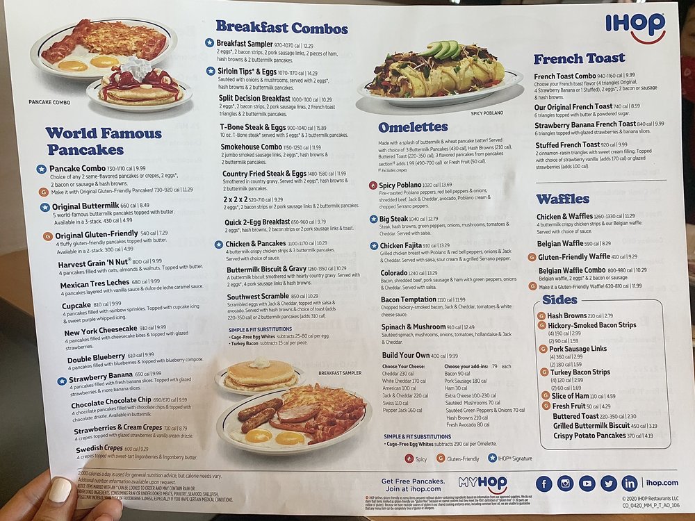 8 of our world famous buttermilk pancakes, 4 servings each of scrambled eggs and golden hash browns, 8 pork sausage links, and choice of 2 pancake toppings. Serves 4. Available for IHOP N GO only. Not available for dine-in.